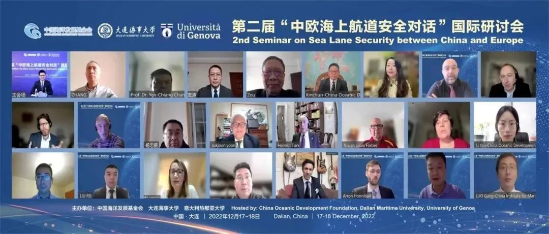 2022年12月17日至18日,由中国海洋发展基金会、大连海事大学和意大利热那亚大学联合主办的第二届“中欧海上航道安全对话”国际研讨会在线举行,来自国内外160余名参会代表相聚云端,围绕“海上航道通信和航行安全”“中欧海事合作”“航道通行与供应链安全”等议题发言并进行了广泛交流和深入探讨。