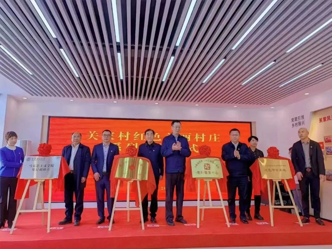4月28日,关家村红色美丽村庄系列揭牌仪式在金普新区向应街道关家村党群服务中心隆重举行。 活动当天,大连金普新区向应街道关家村党群服务中心、新区关工委青少年红色教育基地、新区向应街道关家村红色研学基地、大连理工大学马克思主义学院基层调研点四块牌匾同时揭牌。 2022年2月,向应街道关家村获批大连市首个“推动红色村组织振兴建设红色美丽村庄”试点。一年多来,在新区党工委、管委会的正确领导下,在新区红村建设领导小组的带领下和各部门单位的积极配合下,向应街道坚持规划先行,深度整合全街优势资源,加强协调督导,充分利用上级补助资金的溢出和撬动效应,全力推动关家村党组织建设、集体经济发展提质增效。持续推动关家村红色文化资源优势转化为产业发展优势,促进红色文旅和特色农业产业深度融合发展,以“红色+”多产业融合发展业态壮大村集体经济实力,增强红色文化和旅游业竞争力、影响力、带动力。 当天在新区壮大村集体经济示范园和关家村党群服务中心举行的系列揭牌仪式,对向应街道关家村红色美丽村庄试点建设具有里程碑的重要意义,不仅标志着关家村红色美丽村庄建设掀起新一轮高潮、新区壮大村集体经济发展进入了全新阶段,也开启了高校和地方合作的崭新篇章,推进红色研学和关心下一代工作再上新的台阶。既回顾总结了红色美丽村庄试点建设的成果成效,也吹响了创造乡村振兴发展新伟业的前进号角。向应街道街、村两级党组织将充分发挥党建引领作用,建强红色战斗堡垒、挖掘红色文化资源、培育红色文旅品牌、壮大村集体经济实力,切实将关家村和向应街道打造成为全市、全省乃至全国红色美丽村庄建设和乡村振兴发展的新高地、新标杆。 大连市党建综合服务中心副主任康世成,大连理工大学马克思主义学院院长洪晓楠,金普新区党工委委员、组织部部长王开革、金普新区党工委组织部部务委员孙毅,金普新区党建综合服务中心主任纪阳,金普新区关工委常务副主任李本政、向应街道领导班子成员,红色研学基地合作单位负责人,辖区党员代表,村民代表,学生代表等出席仪式。